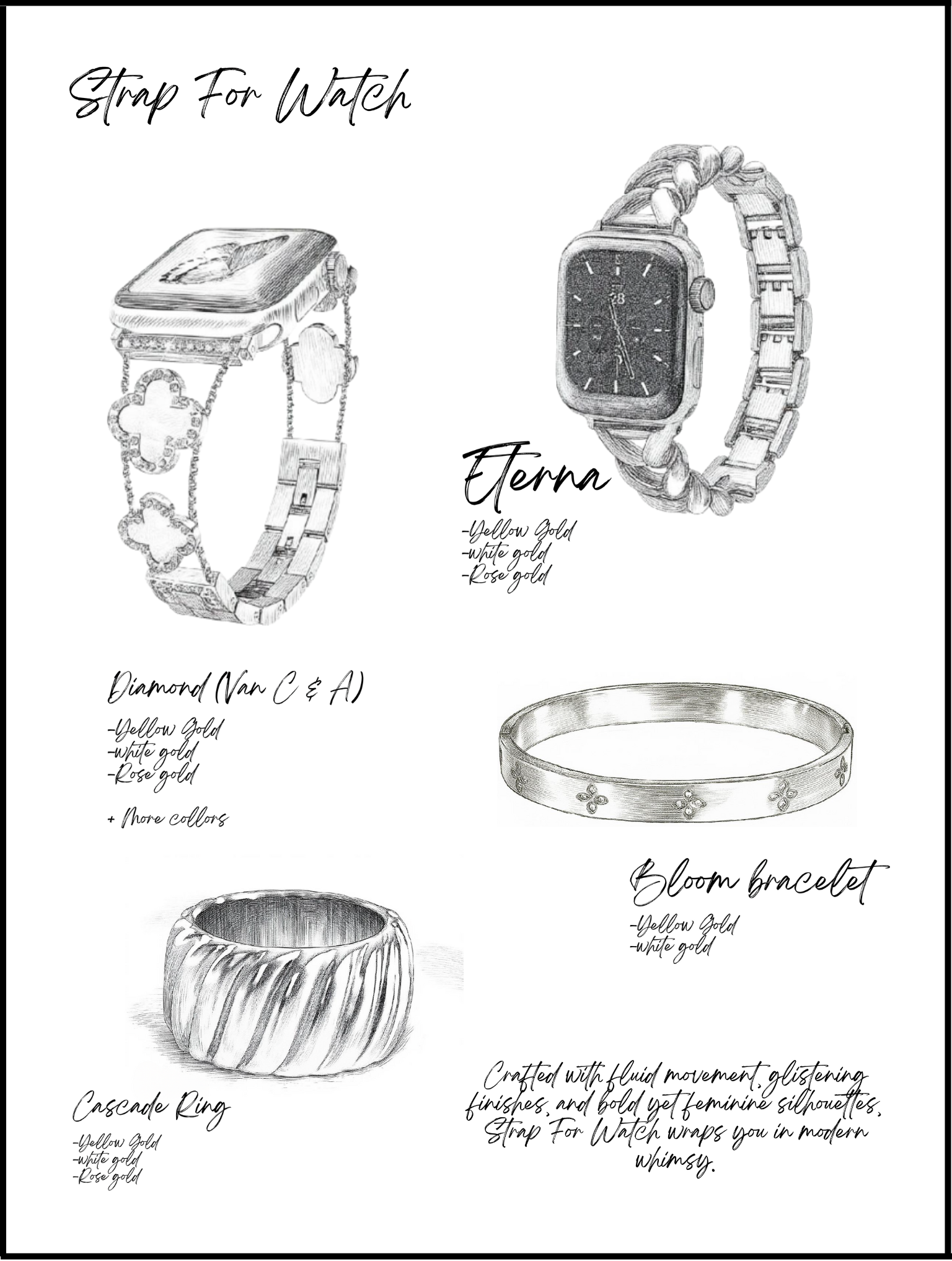 Our designs combine timeless class with a minimalist aesthetic, where luxury always takes centre stage and every detail counts. Whether you’re drawn to the charm of classic styles or the power of modern simplicity, each piece is made to elevate every look, always with a distinctive, contemporary twist.